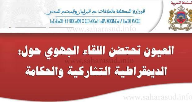 تنظم الوزارة المكلفة بالعلاقات مع البرلمان والمجتمع المدني يومه السبت 16 يناير على الساعة الثامنة والنصف صباحا بقصر المؤتمرات بالعيون لقاءا جهويا يدخل في إطار اللقاءات الجهوية التي دأبت على تنظيمها لمواكبة الجمعيات في مجالي الديمقراطية التشاركية والحكامة .