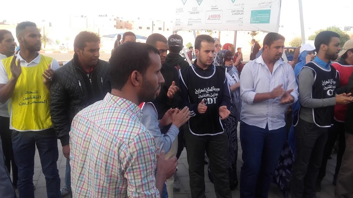 في ظل استمرار سياسة الجمود الذي طال ملف التشغيل من طرف المعنيين بالشأن المحلي و على عكس ما يروج له, نظم إتحاد المعطلين الصحراويين أبناء إقليم العيون بشارع السمارة قرب حي معطى الله على الساعة السادسة مساء يوم الجمعة 18/03/2016 وقفة احتجاجية حضارية رددت خلالها شعارات منددة بهذا الحيف بالدفع و الصفع و العبارات العنصرية, لتتحول بعد ذلك إلى مسيرة صامتة حاشدة تجاوب معها المارة بالدعاء و استنكارالتعامل الامني المجحف وإهمال المسؤولين للملف المطلبي للمعطلين الصحراويين أبناء إقليم العيون, لنتجه المسيرة نحو شارع مكة ولتتجاوز مندوبية التشغيل استمرت محاولة الشرطة بزي مدني تفريق مسيرة المعطلين الحضارية بتحويلها نحو الأزقة.أكد منتسبوا إتحاد المعطلين الصحراويين أبناء إقليم العيون للمسؤوليين الأمنيين أنهم مصرون على الاستمرار في النضال السلمي إلى أن يلبى مطلبهم المشروع المتمثل في التشغيل و العيش الكريم و الاستفادة من الخيرات المنجمية و البحرية للمنطقة.