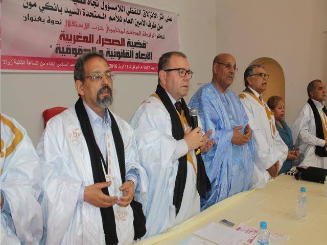 نظمت الرابطة الوطنية لمحاميي حزب الاستقلال ، ندوة بعنوان ” قضية الصحراء المغربية الأبعاد القانونية و الحقوقية” ، بالقاعة الكبرى للمركز الجهوي للاستثمار بالعيون، وقد شهد هذا اللقاء الذي أطره الفرع الجهوي لرابطة ، في بدايته قراءة الفاتحة على روح ” ابراهيم صيكا ” لتليه عدت مداخلات كانت أولها لسيد مولاي حمدي ولد الرشيد القيادي الاستقلالي منسق الجهات الثلاث وعضو اللجنة التنفيذية لحزب للحزب و قد تطرق في مستهل كلمته بالترحيب بالضيوف ، ثم الى الاوضاع الراهنة والنقاشات التي تدور بين بعض الاشخاص حول تقرير الامين العام للامم المتحدة وما سيحمله من جديد ، بحيث أكد ولد الرشيد أن التقرير لن يعرف جديد،وأن الامر لن يخرج عن السياق الذي يعرف كل سنة ، وان كل ما يشاع غير صحيح،لتنطلق بعد ذالك أشغال اللقاء بمداخلة لرئيس رابطة المحامين الاستقلاليين السيد خالد الطرابلسي الذي اشار ان على الأمين العام للأمم المتحدة مراجعة أوراقه وإعادة النظر في تصريحاته التي لم و لن تساهم في إيجاد حل توافقي للقضية ، بينما اكد بقية المتدخلين ان تصريحات بان كيمون تجاوزت كل الخطوط الحمراء وبعيدة كل البعد عن الحياد.