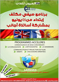 يعلن مركز العيون للغات عن انطلاق برنامج صيفي مكثف لتدريس اللغات الحية
