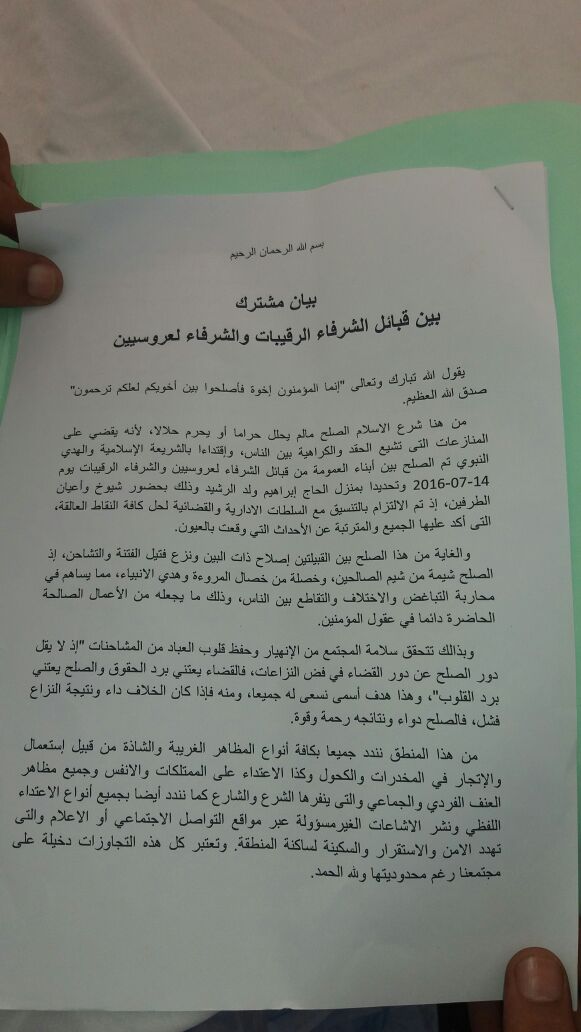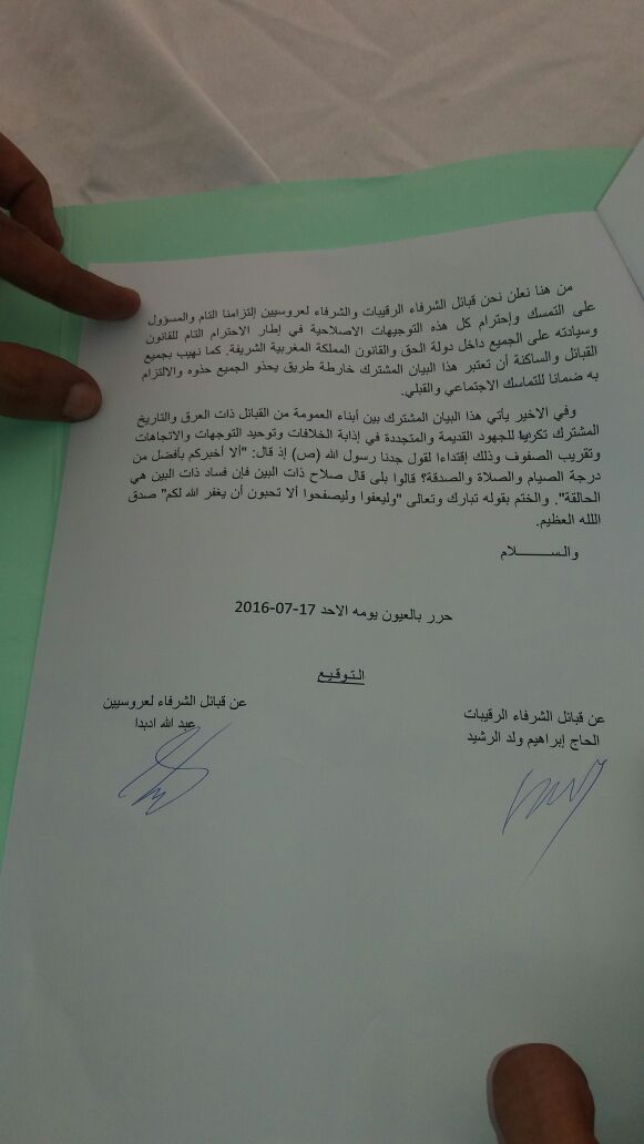 حصري : البيان الختامي للقاء الشرفاء الرقيبات و أخوتهم الشرفاء العروسين + فيديوأخبار الصحراء إدارة الموقع نشر في 17 يوليو 2016 الساعة 9 و 29 دقيقة الصحراء لايف : العيون مشاركة بفايسبوكFacebookFacebookمشاركة بتويترTwitterTwitter مشاركة بواتسابWhatsAppWhatsApp Share to ارسال ايميلEmailEmail مشاركة بلينكدانLinkedInLinkedInمشاركة بمسنجرMessengerMessenger طباعةPrintطباعة رابط المشاركة :