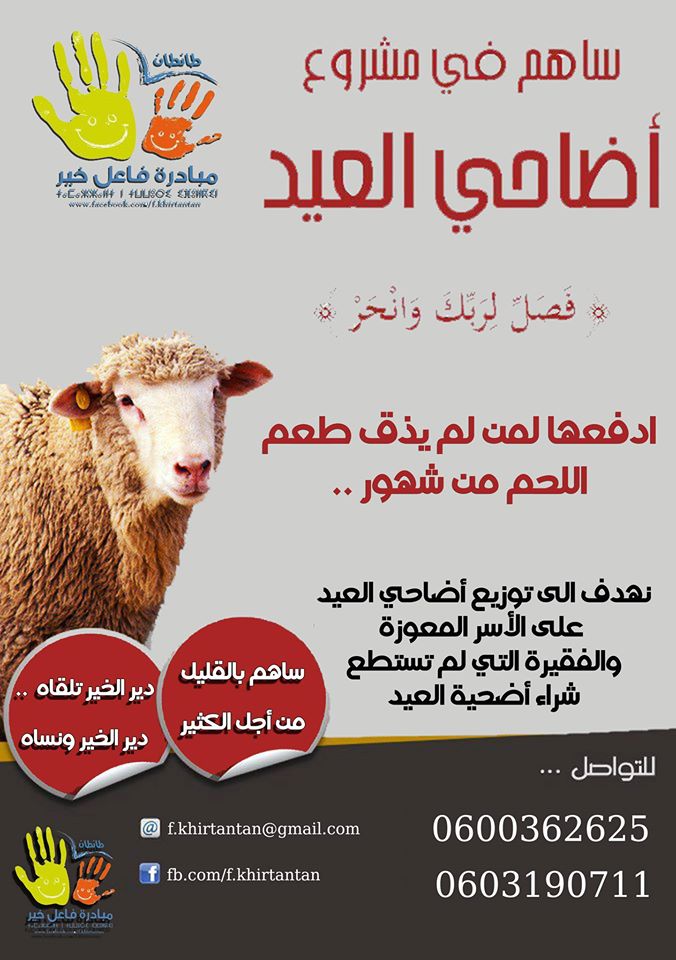 تعزيزاً لمبدأ التكافل الاجتماعي وشعوراً بالمسؤولية تجاه الفئات المحتاجة تعلن ” مبادرة_فاعل_خير_طانطان “ عن انطلاق حملة جمع التبرعات ” لمشروع أضاحي العيد ” .