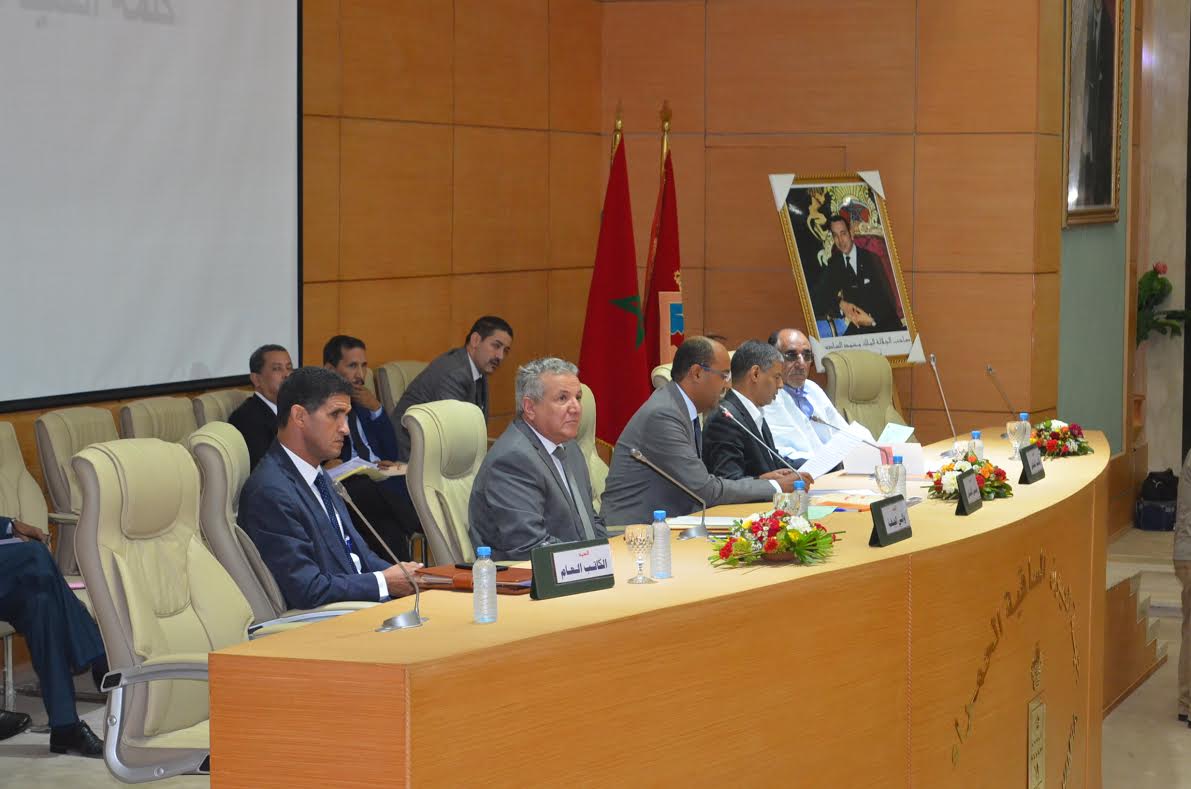 شهدت قبل قليل قاعة الاجتماعات بمقر جهة العيون الساقية الحمراء ، إنعقاد أشغال الدورة العادية لشهر أكتوبر 2016 ، بحضور رئيس المجلس ” سيدي محمد ولد الرشيد ” و والي الجهة ” يحضيه بوشعاب ” ، و بعد استكمال النصاب القانوني للمجلس الذي غاب عنه عدد من المستشارين المحسوبين على المعارضة ، تم افتتاح أشغال الدورة التي تضمن جدول أعمالها 9 نقط و هي كتالي :
