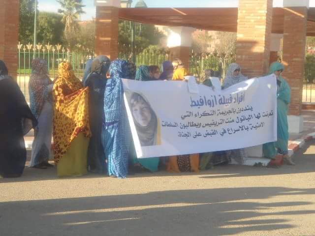 تم إلقاء القبض على قتلة المرحومة الباتول منت البشير ولد التريفيس التي قتلت بمنطقة التويبيع بنفوذ الجماعة الترابية أسرير التابعة لإقليم كليميم ، شهر مارس الماضي ، هذه الجريمة التي حركت ساكنة المنطقة ، ونظمت وقفات بالقرب من ولاية الجهة ، وتم إصدار بيانات تدعو الدولة إلى تحمل مسؤوليتها في حماية أرواح الناس وممتلكاتهم .