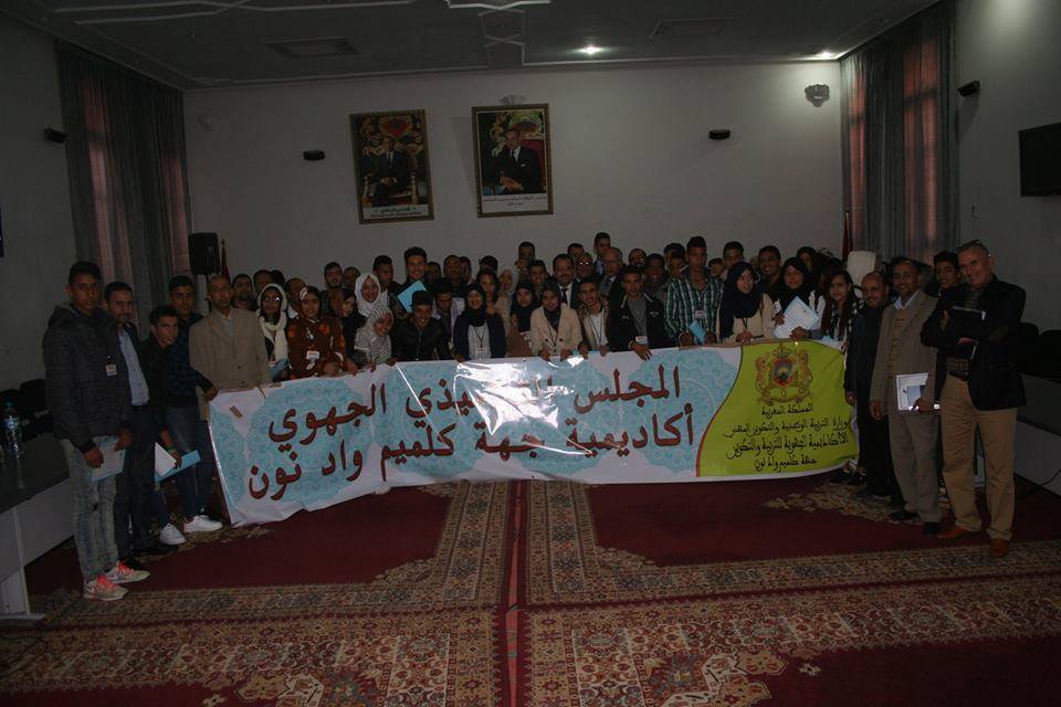 تم اليوم كما كان مقررا عقد اللقاء التلاميذي الجهوي في يومه الأول بعد الافتتاح الذي ترأسه السيد مدير الأكاديمية بحضور السيد الباشا ومدير المركز الجهوي للمهن التربية والتكوين وممثلي المجالس المنتخبة ، تم تقديم عروض تربوية حول مفهوم المثقف النظير من طرف جمعية مدرسي علوم الحياة والأرض بكلميم، بعد ذلك تم الاشتغال في 8 ورشات لها كلها هدف تقوية قدرات التلاميذ المعرفية والتواصلية ، الجمعية أطرت ورشة عملية في المجال البيئي حيث أبدع التلاميذ مسرحية بليغة ومحملة بالرسائل التثقيفية في قالب تربوي جذاب مع إنتاج بعض الأسناد من خلال التدوير كما قامت الورشة بحملة إنتاج النظافة بالاكاديمية والتي لاقت استحسانا كبيرا , بعد تقاسم الورشات تمت عملية انتخاب ممثلي المجلس التلاميذي الجهوي , و اليوم التلاميذ على موعد مع زيارة مركز التربية على البيئة الذي تسيره جمعية مدرسي علوم الحياة والأرض كما ستقوم بزيارة حديقة التواغيل والحزام الأخضر للمدينة