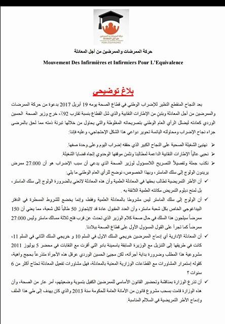 توصل الموقع ببلاغ ترد فيه حركة الممرضات و الممرضين من أجل المعادلة ما يقولون أنها مغالطات الوزير التي يمررها عبر بلاغات صحفية وزارية و مداخلات في الاعلام الوطني.