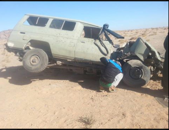 علمت الصحراء زووم من مصادر إعلامية تابعة لجبهة البوليساريو أن لغما انفجر بسيارة دفع رباعي عسكرية وعلى متنها عناصر من مقاتلي جبهة البوليساريو ما أدى إلى إصابات خطيرة كادت تودي بحياتهم جميعا.وأضافت المصادر أن سيارة الدفع الرباعي كانت تمر بالقرب من الجدار العازل ما تسبب في انفجار أحد الألغام التي نتعرف انتشار كبير في المنطقة العازلة الأمر الذي أدى الى تفجير النصف الأمامي وإصابة السائق والمرافق بإصابات متفاوتة الخطورة نقلوا الى مستشفى مدينة تندوف الجزائرية لتلقي العلاج.