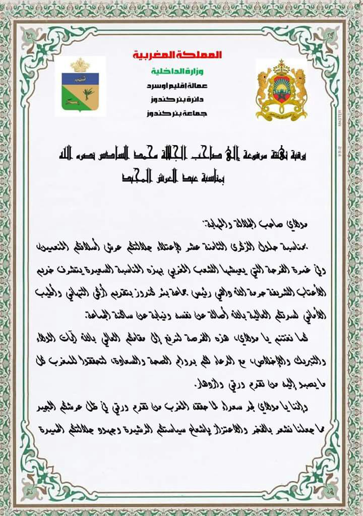 تهنئة السيد رئيس جماعة بئر كندوز لصاحب الجلالة بمناسبة الذكرى 18 لعيد العرش المجيدأخبار وطنية إدارة الموقع نشر في 29 يوليو 2017 الساعة 12 و 26 دقيقة الصحراء لايف : بئر كندوز مشاركة بفايسبوكFacebookFacebookمشاركة بتويترTwitterTwitter مشاركة بواتسابWhatsAppWhatsApp Share to ارسال ايميلEmailEmail مشاركة بلينكدانLinkedInLinkedInمشاركة بمسنجرMessengerMessenger طباعةPrintطباعة رابط المشاركة :