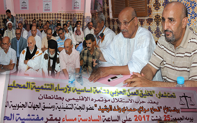 في إطار التحضيرات الجارية لإنجاح محطة المؤتمر الوطني العام السابع عشر، ترأس السيد مولاي حمدي ولد الرشيد عضو اللجنة التنفيذية ومنسق الحهات الجنوبية الثلاث لحزب الإستقلال المؤتمر الإقليمي بطانطان بحضور المفتش الإقليمي للحزب “الحسين طابلاد” والكاتب الجهوي “زيني السالك ” الى جانب “موسى كرواز ” العضو باللجنة المركزية للحزب وذلك تحت شعار ” تخليق العمل الحزبي دعامة أساسية لإرساء التنمية المحلية” .