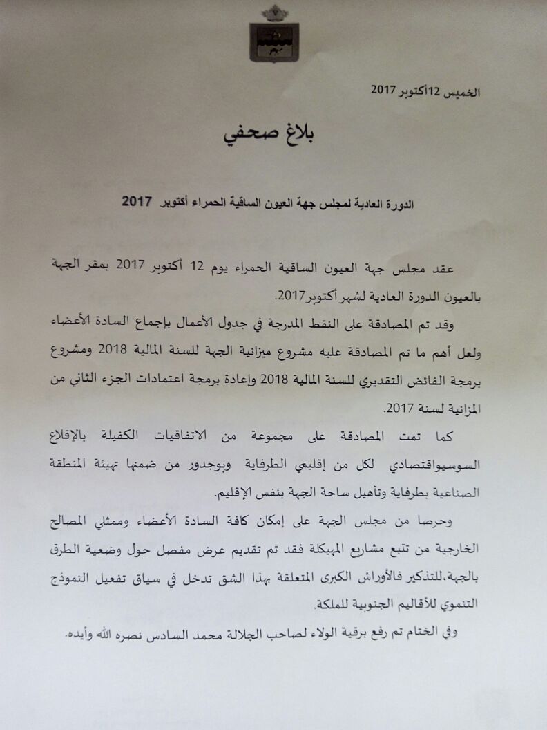 وهذه نسخة من البلاغ الصادر عن جهة العيون نورده كما توصلنا به :