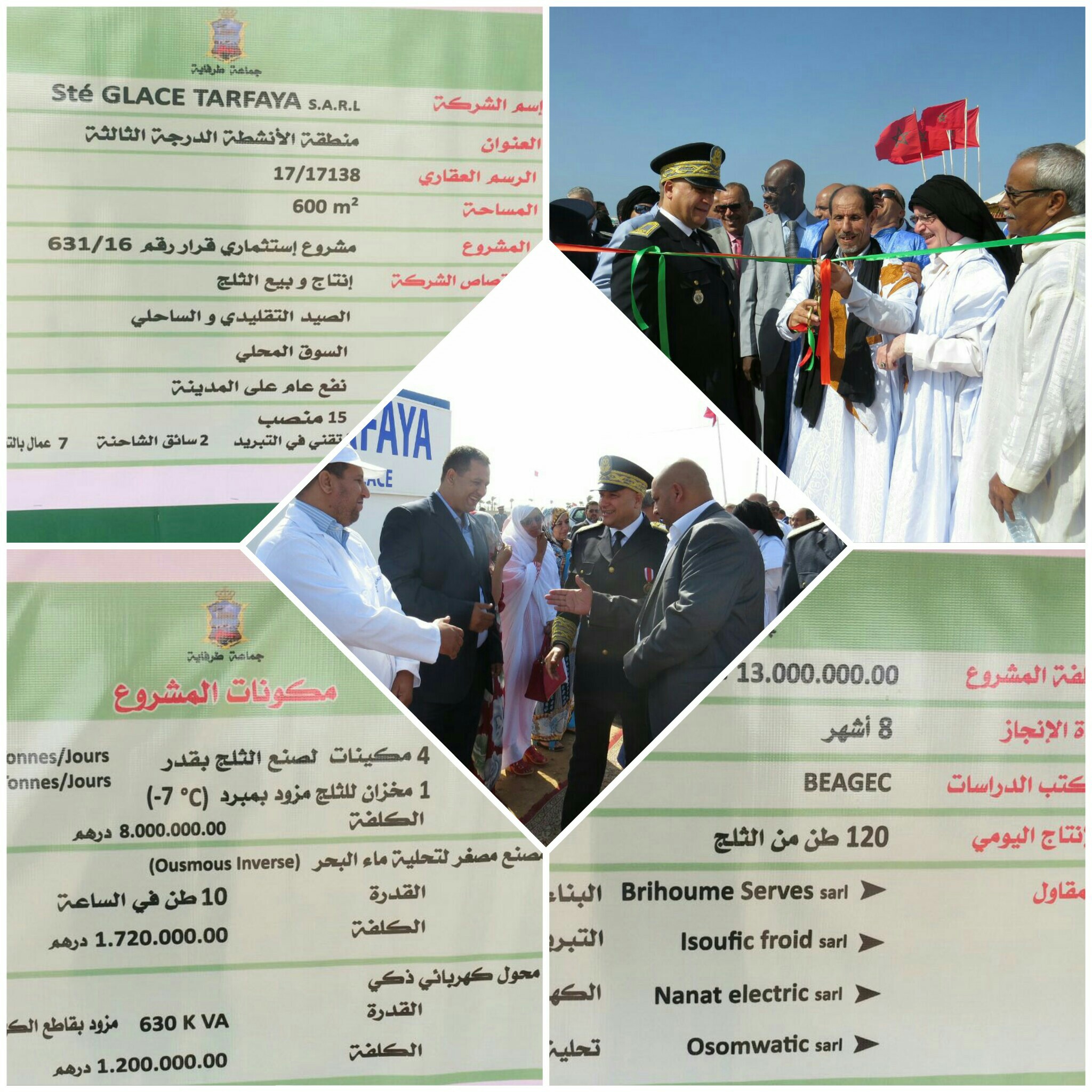 وفي هذا الإطار صرح المدير العام للمشروع Glace Tarfaya السيد مولاي هشام ابرهوما السباعي بأن هذا المشروع جاء في إطار الدفع بعجلة التنمية بمدينة طرفاية من خلال تيسيرعمل أرباب الصيد البحري وأرباب مراكب الصيد التقليدي من خلال توفير المادة الخام لمهنيي الصيد البحري .