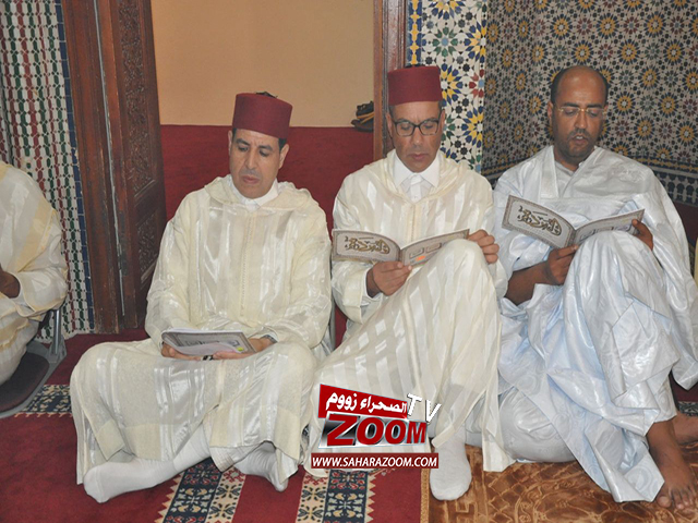 الحفل الديني حضره كل من والي الجهة و رئيس جهة العيون السيد “سيدي حمدي ولد الرشيد” والكاتب العام للولاية، وذلك مباشرة بعد صلاة المغرب تمت خلاله قراءة حزب من المصحف الكريم، ثم تلا بعد ذلك فقهاء المجلس العلمي بالعيون عروضا مفصلة حول مشروعية الإحتفال بذكرى المولد النبوي الشريف، من خلال إستعراض أقوال العلماء والفقهاء الكبار .