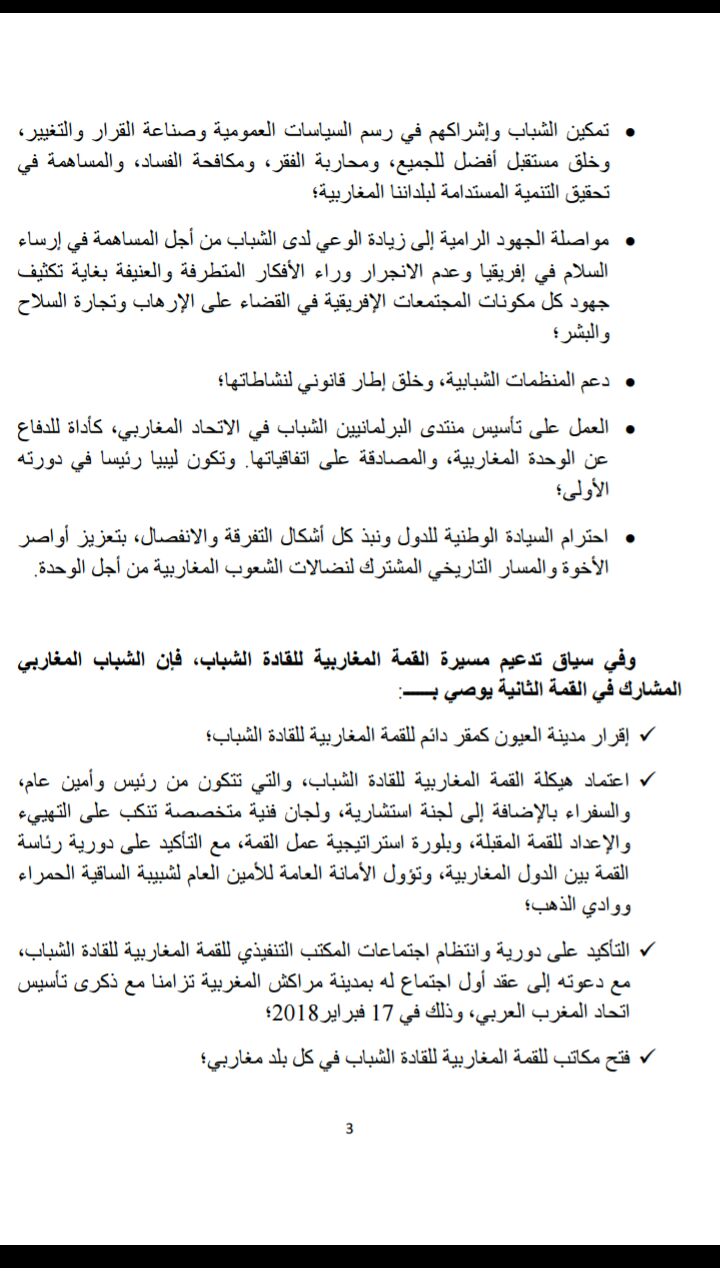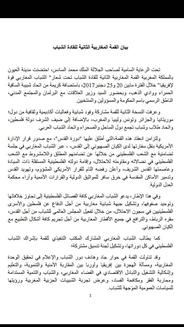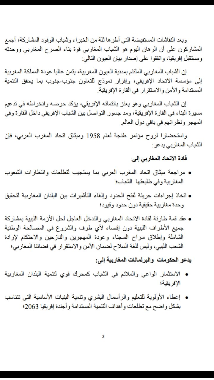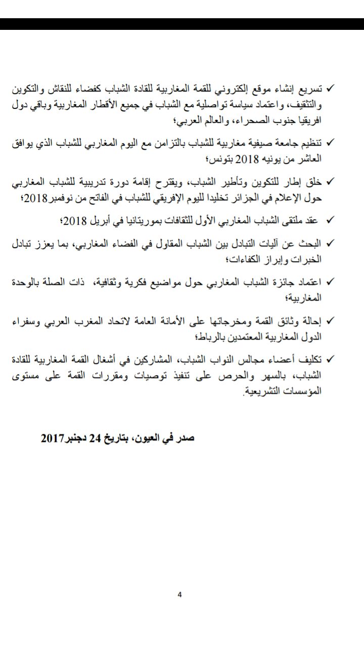 وهذه نسخة من البيان الختامي للقمة المغاربية الثانية للقادة الشباب :
