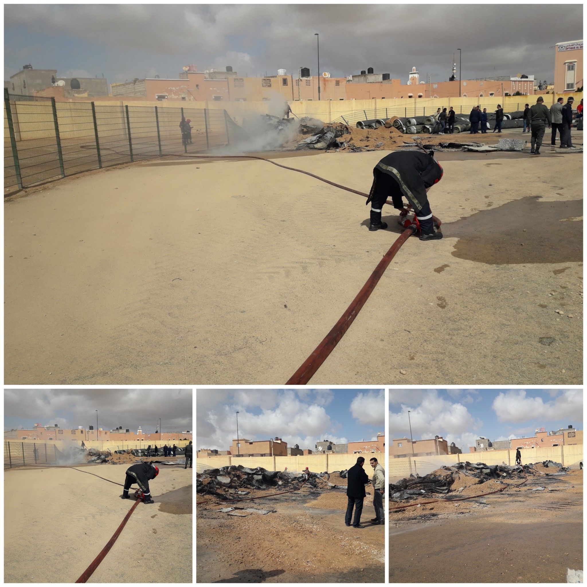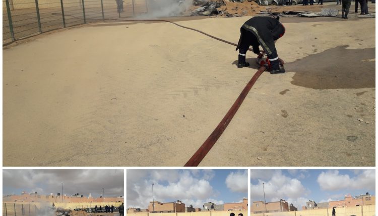 شب حريق قبل قليل في الأفرشة التي توضع تحت العشب الإصطناعي الخاصة بملعب مولاي رشيد ، الذي يشهد إعادة التهيئة .