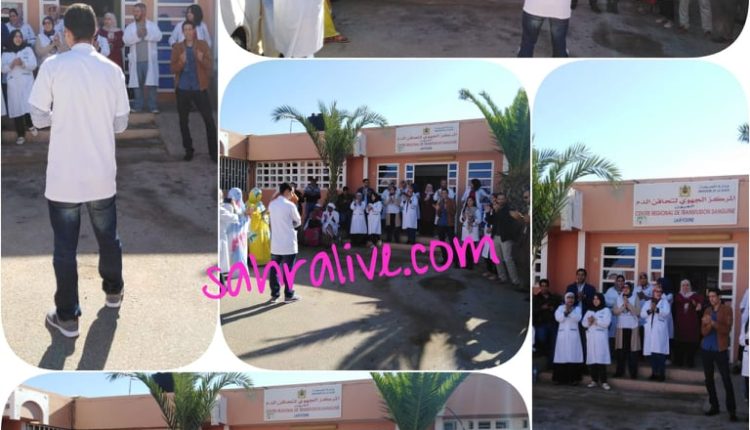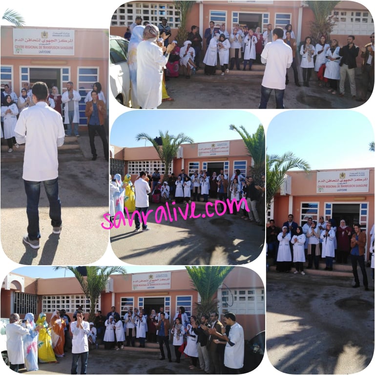 نظم التنسيق النقابي المكون من الفدرالية الديموقراطية للشغل، الاتحاد العام للشغالين بالمغرب، الكونفدرالية الديموقراطية للشغل والكونفدرالية العامة للشغل، وقفة احتجاجية انذارية امام المركز الجهوي لتحاقن الدم بالعيون احتجاجا على التماطل الذي تنهجه ادارة المركز الجهوي في حل مشاكل التسيير والتدبير بالمركز الجهوي.