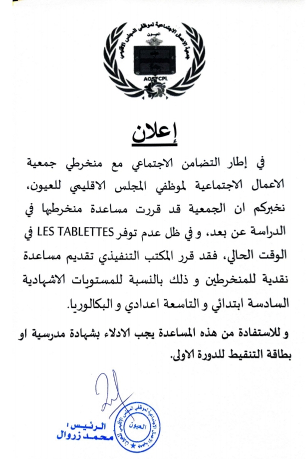 جمعية الأعمال الإجتماعية لموظفي المجلس الإقليمي بالعيون تقدم مساعدة لمنخرطيهاأخبار الصحراء إدارة الموقع نشر في 20 أبريل 2020 الساعة 7 و 48 دقيقة الصحراء لايف : العيون مشاركة بفايسبوكFacebookFacebookمشاركة بتويترTwitterTwitter مشاركة بواتسابWhatsAppWhatsApp Share to ارسال ايميلEmailEmail مشاركة بلينكدانLinkedInLinkedInمشاركة بمسنجرMessengerMessenger طباعةPrintطباعة رابط المشاركة :