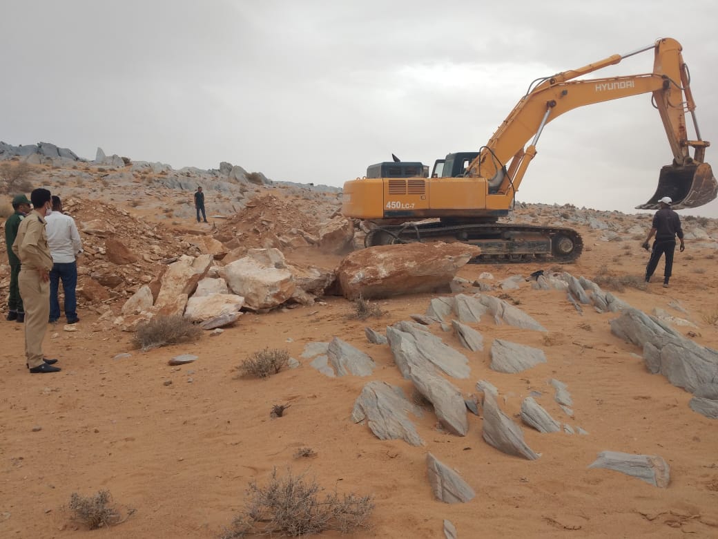 تمكنت المديرية الجهوية للثقافة لجهة العيون الساقية الحمراء بتنسيق مع السلطات الإقليمية بالسمارة ووالي جهة العيون الساقية الحمراء من وقف الأشغال الجائرة التي تعرض لها موقع النقوش الصخرية “للغشيوات” بالجماعة الترابية أمكالة بإقليم السمارة من طرف شركة متخصصة في مقالع الأحجار. وأوضح بلاغ صادر عن المديرية الجهوية أنه وبفضل فطنة حراس المحافظة الذين أخبروا مفتش المباني والمواقع التاريخية بالمديرية الذي انتقل على الفور إلى عين المكان، وقد بادرت المديرية الجهوية لقطاع الثقافة بالعيون إلى التنسيق مع السيد عامل إقليم السمارة في حينه ومع السيد والي جهة العيون الساقية الحمراء، حيث أرسل السيد عامل السمارة على الفور لجنة مكونة من السلطة المحلية والمياه والغابات وممثل الجماعة الترابية أمكالة، ومفتش المباني التاريخية والمواقع بالمديرية وتمت معاينة الأشغال الجائرة التي تعرض لها الموقع وتم على الفور إيقاف الأشغال، وطلب من الشركة الانسحاب من الموقع فورا وإرجاع الحالة إلى ما كنت عليه.