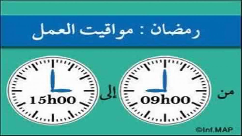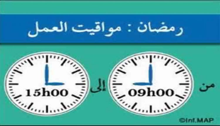 وأوضح بلاغ لقطاع إصلاح الإدارة، أن ذلك يأتي طبقا لقرار الوزير المكلف بتحديث القطاعات العامة رقم 1899.05 الصادر في 25 شعبان 1426 (30 سبتمبر 2005)، بتحديد مواقيت العمل بإدارات الدولة والجماعات المحلية في شهر رمضان.